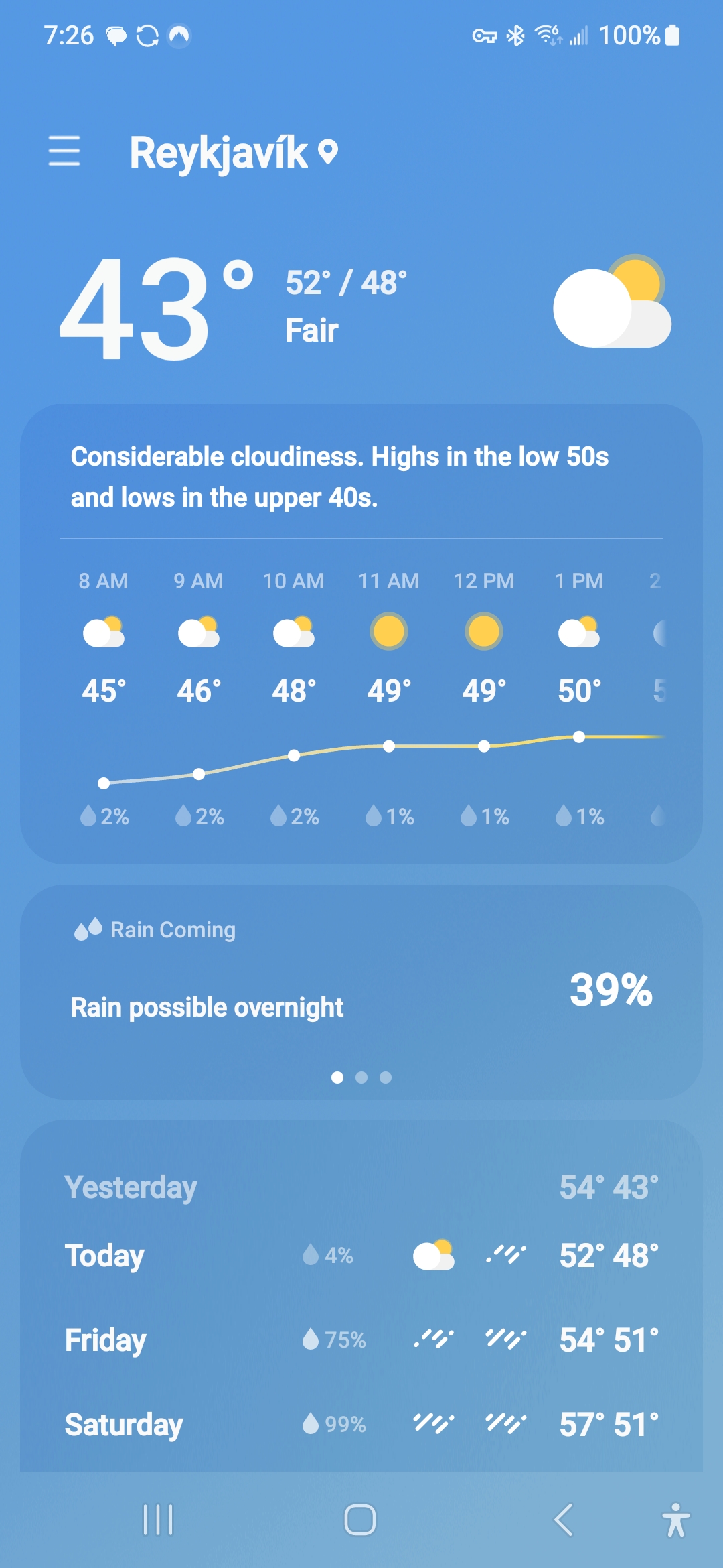 The weather has been mostly good since my arrival. It is summer here, but not like the summer we know at home. Despite the name of this blog, I can’t really recall a day since I’ve arrived where the weather has been above 63 degrees. Generally it has been in the low 50s at night and the temps will creep above 60 on a nice day. When the sun shines it is warm and it is perfect to take a walk or have coffee outside somewhere. This is summer in Iceland.