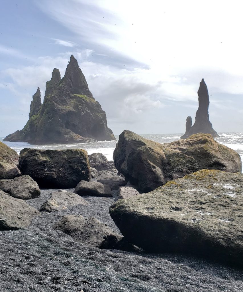 Still there are moments when even the tourist cluster won’t be enough to protect them. Reynisfjara beach is one of my favorite places. The rocks on the cover page of the blog are from there as is the recent photo. The YouTube video is more surprise and excitement than I’m looking for. I feel bad for them, but it is a reminder to pay attention and be careful of the local landscape. In the end, we all travel to explore the unknown, and while the tourists I encounter may move slowly, they remind me of the shared joy of discovery.