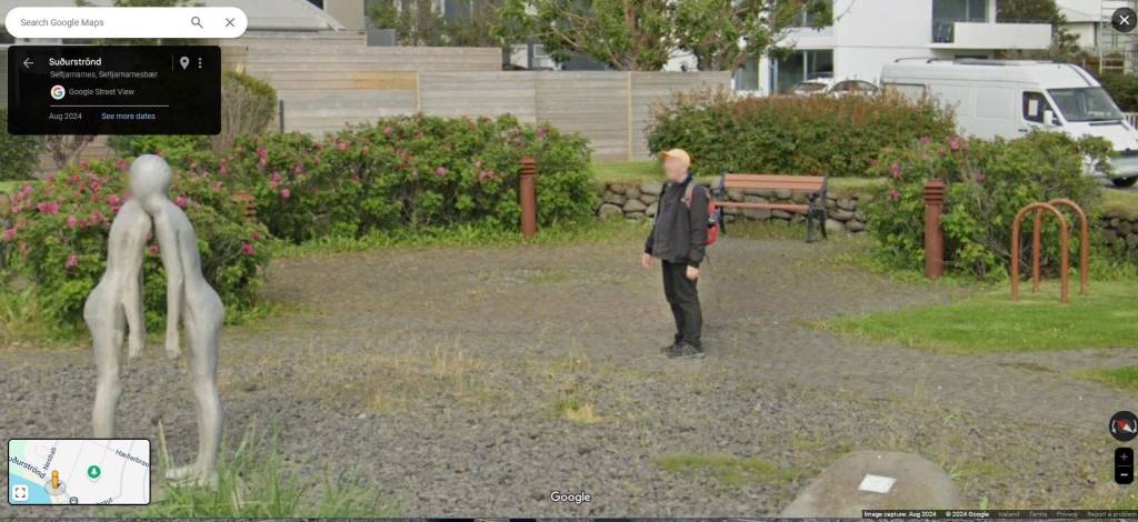 Even though this is my 3rd visit to Iceland, there have been moments of surprise and enjoyment (as you can read in other blog posts). To be clear I am not seeking high-risk adventures–I value my well-being and health. It is the simple and I am seeking surprise and enjoyment. Google reminded me of that recently. I was out on a hike in August. I was exploring a neighborhood I hadn’t been in before. I found a local park along the shore with a statue that I was admiring. Lost in the moment, Google Maps captured me at that spot. The point was that I got out and enjoyed a moment that was unplanned, unexpected, and a true surprise.