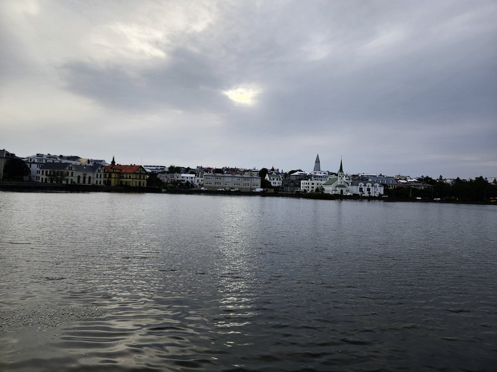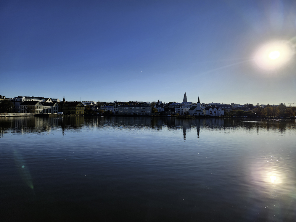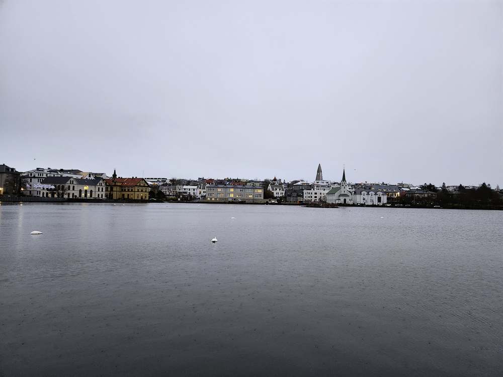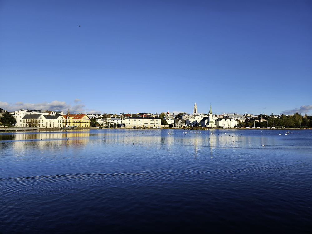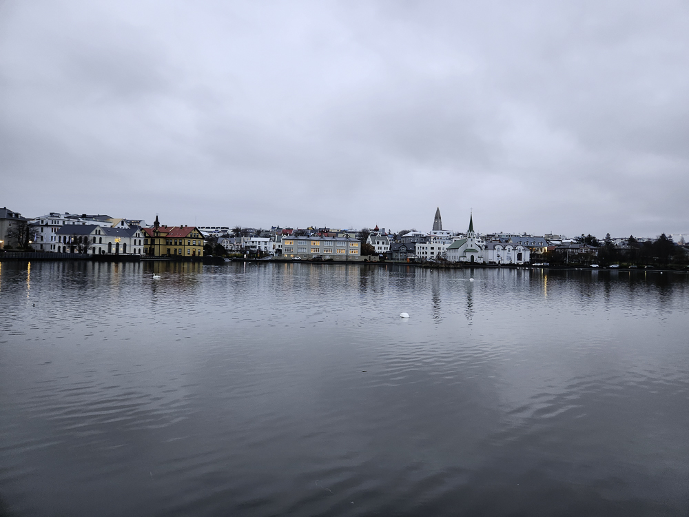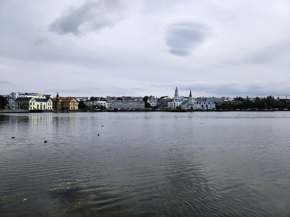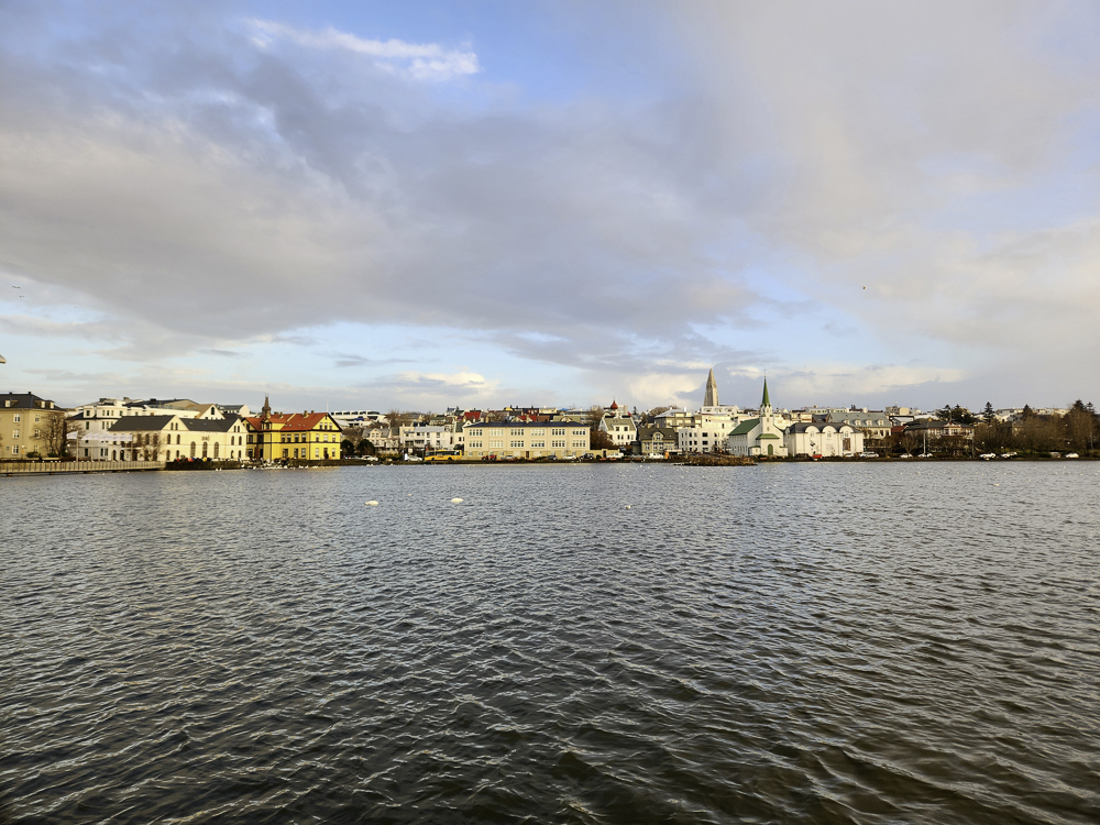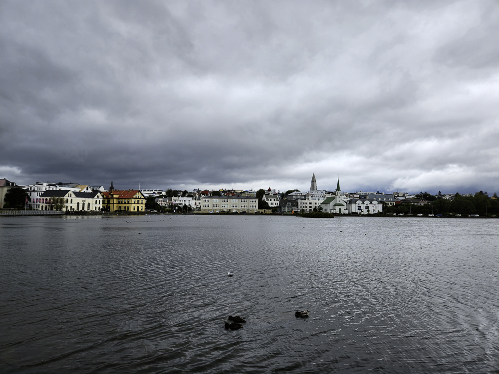 The Photo: On a warm sunny day in 2017 Kathleen and I took a walk through Reykjavik. We lingered around Tjörnin and took pictures. It was a lovely day. When we got home and looked at those photos one stood out and we liked it so much we had the photo made into a canvas that has hung in our living room for the past several years. We love that photo and we get a lot of complements on it. Little did I know that I would pass that spot every day on my way to work at Háskóli Íslands.