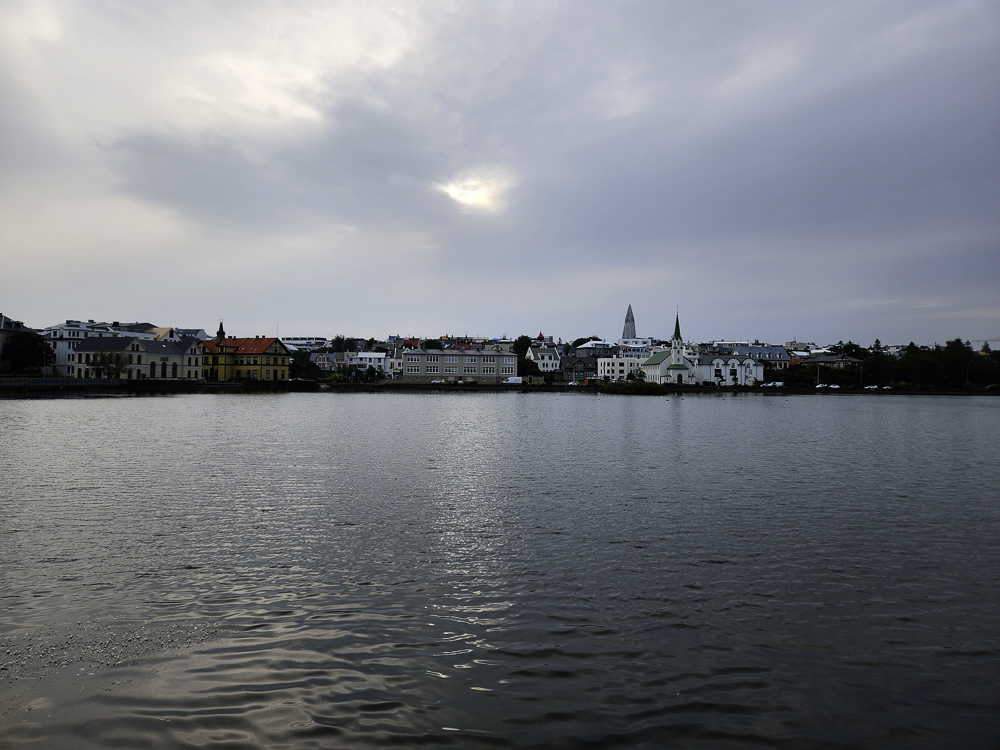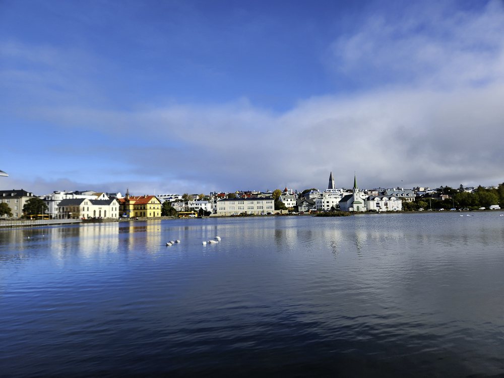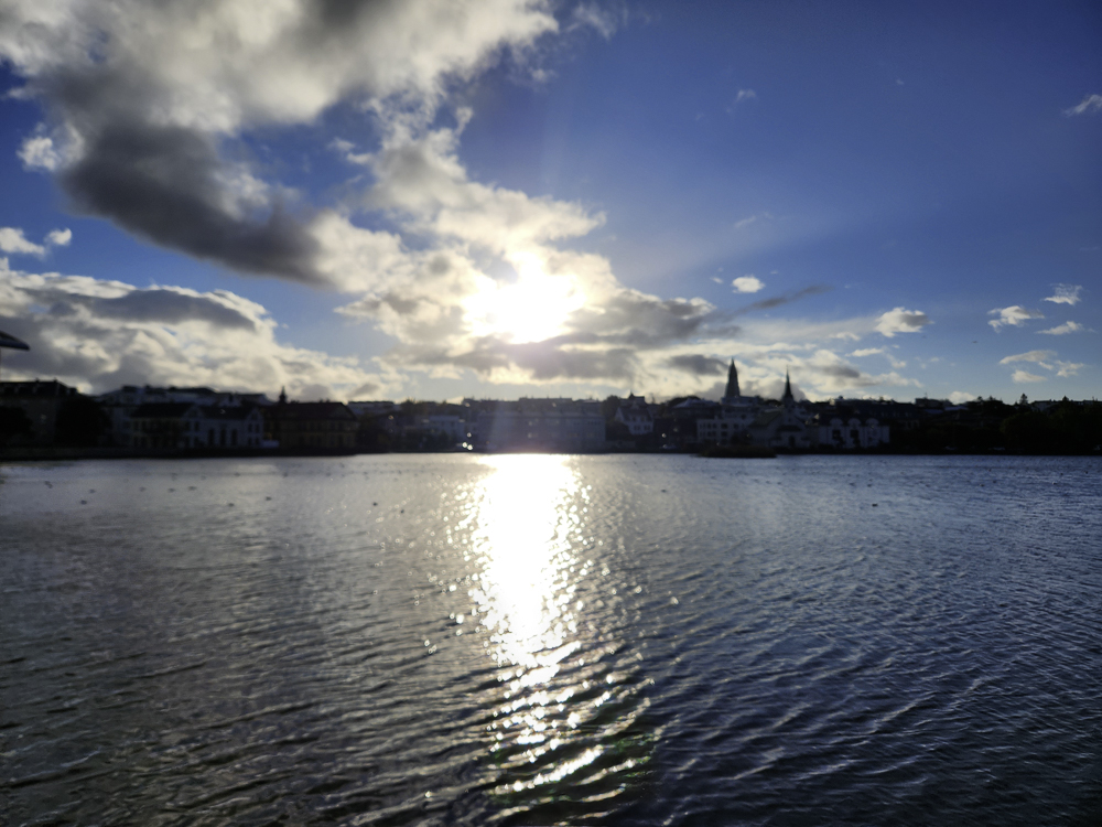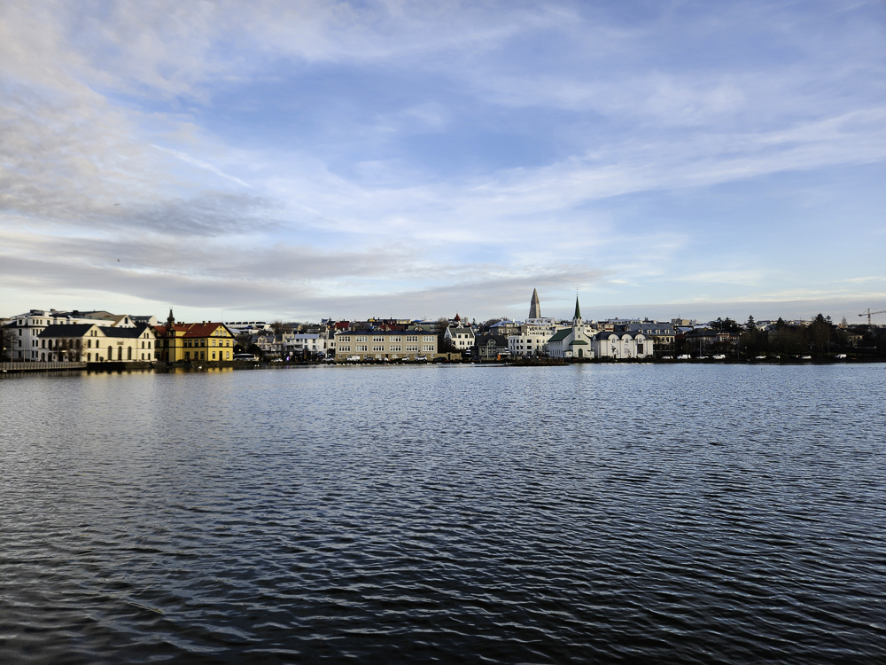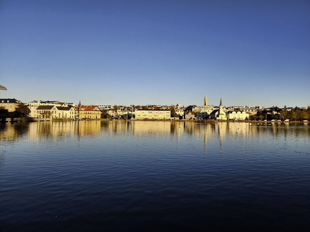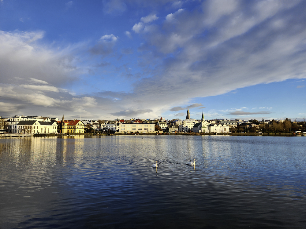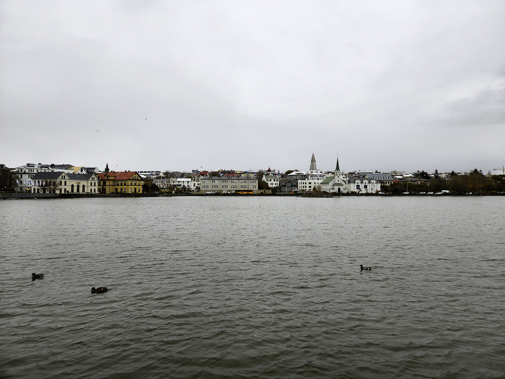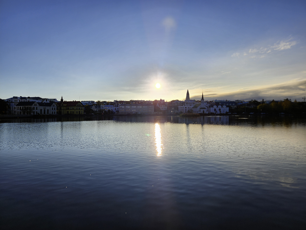 The Photo: On a warm sunny day in 2017 Kathleen and I took a walk through Reykjavik. We lingered around Tjörnin and took pictures. It was a lovely day. When we got home and looked at those photos one stood out and we liked it so much we had the photo made into a canvas that has hung in our living room for the past several years. We love that photo and we get a lot of complements on it. Little did I know that I would pass that spot every day on my way to work at Háskóli Íslands.