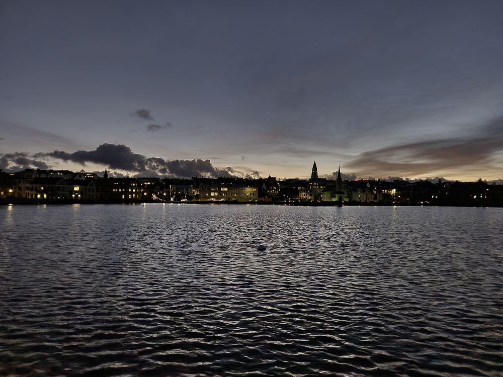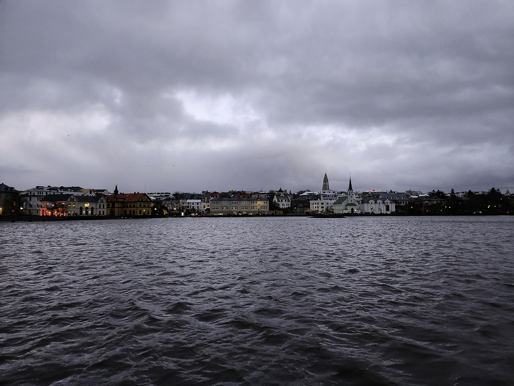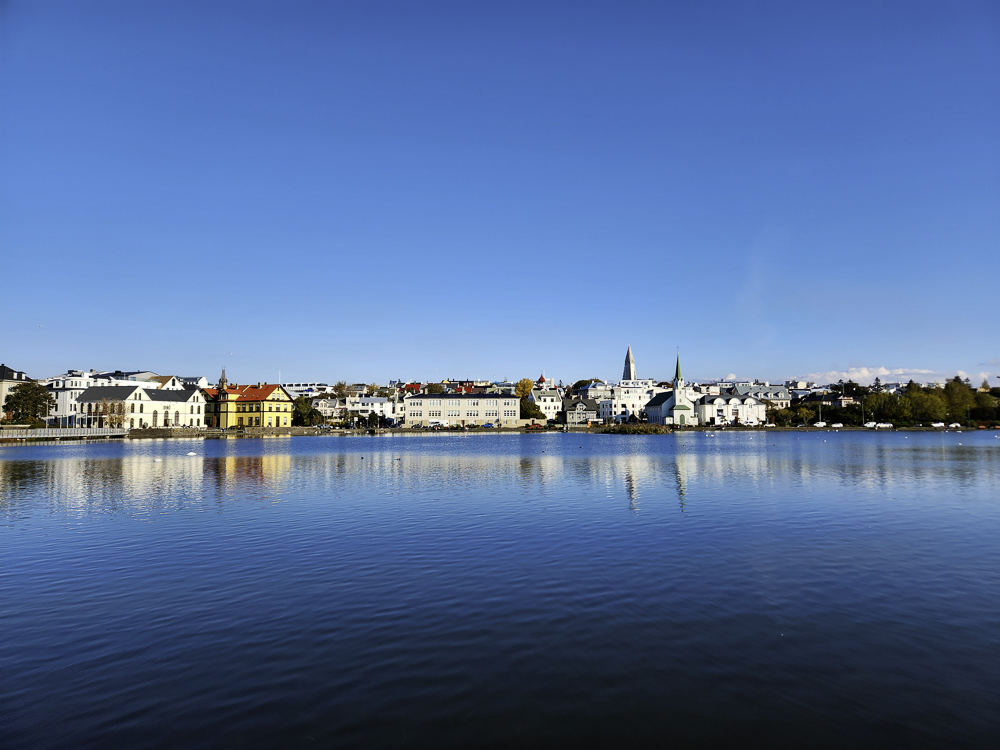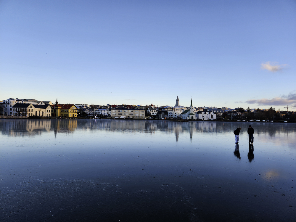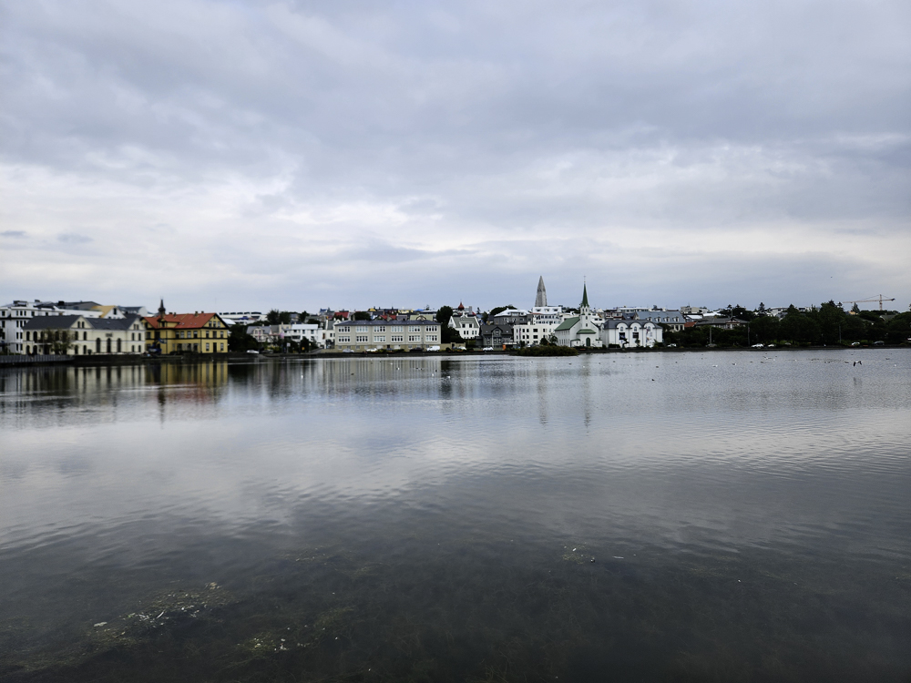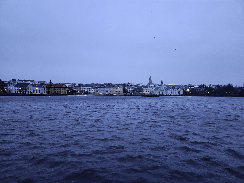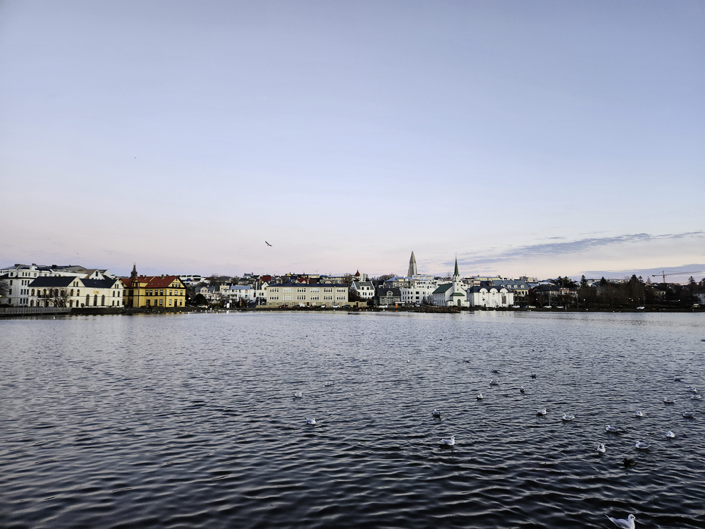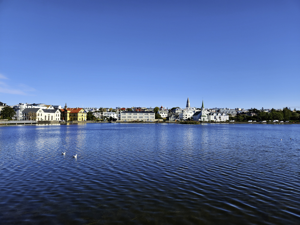 The Photo: On a warm sunny day in 2017 Kathleen and I took a walk through Reykjavik. We lingered around Tjörnin and took pictures. It was a lovely day. When we got home and looked at those photos one stood out and we liked it so much we had the photo made into a canvas that has hung in our living room for the past several years. We love that photo and we get a lot of complements on it. Little did I know that I would pass that spot every day on my way to work at Háskóli Íslands.
