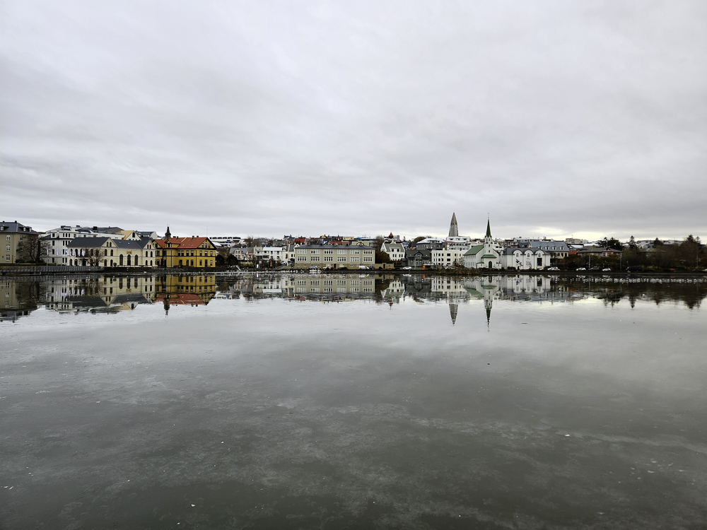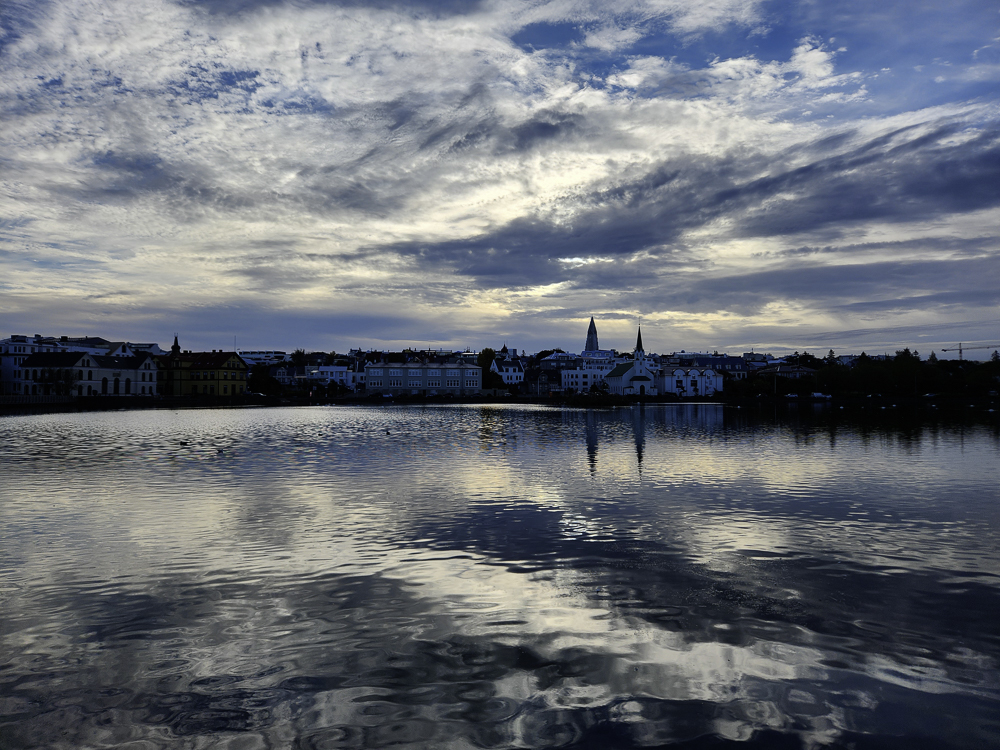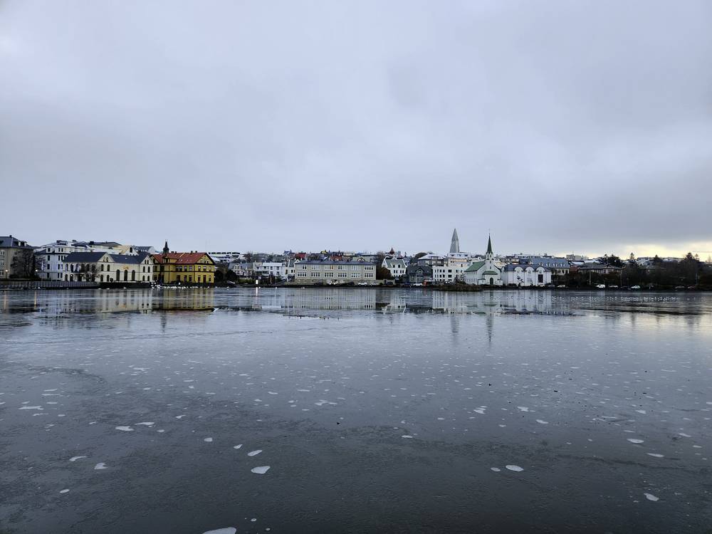 How this comes together: Iceland continually startles me with it’s ephemeral beauty. An ordinary place will have the right light and sky and it becomes spectacular “today.” One of the things I’ve learned by living and working alongside Lake Michigan is that it looks different every day. I decided to look at my walking commute by Tjörnin with that perspective and use rephotography to capture place. Some of these images are ordinary and others are more spectacular. You decide which ones you like.
